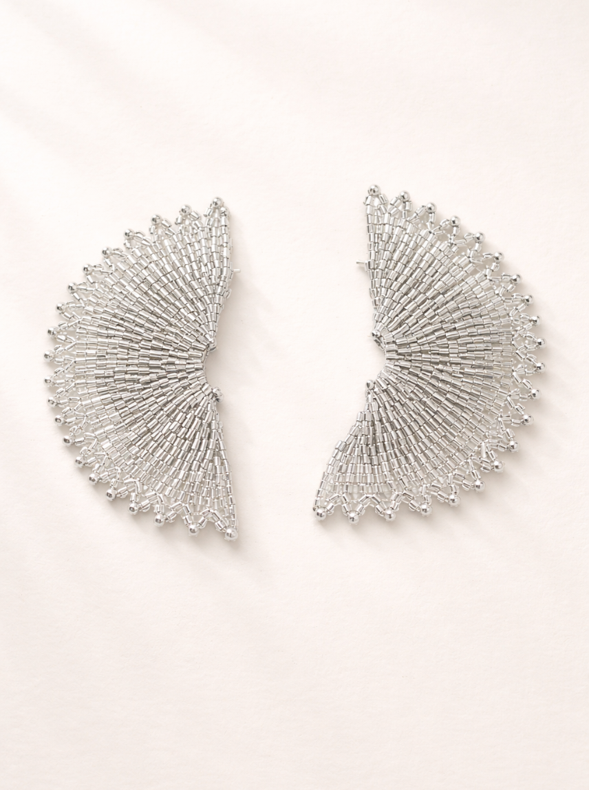 Aretes Aural Tejidos Dekoloving elaborados a mano con diseño tipo abanico. Una pieza ligera, elegante y moderna que aporta movimiento y sofisticación a cualquier look.